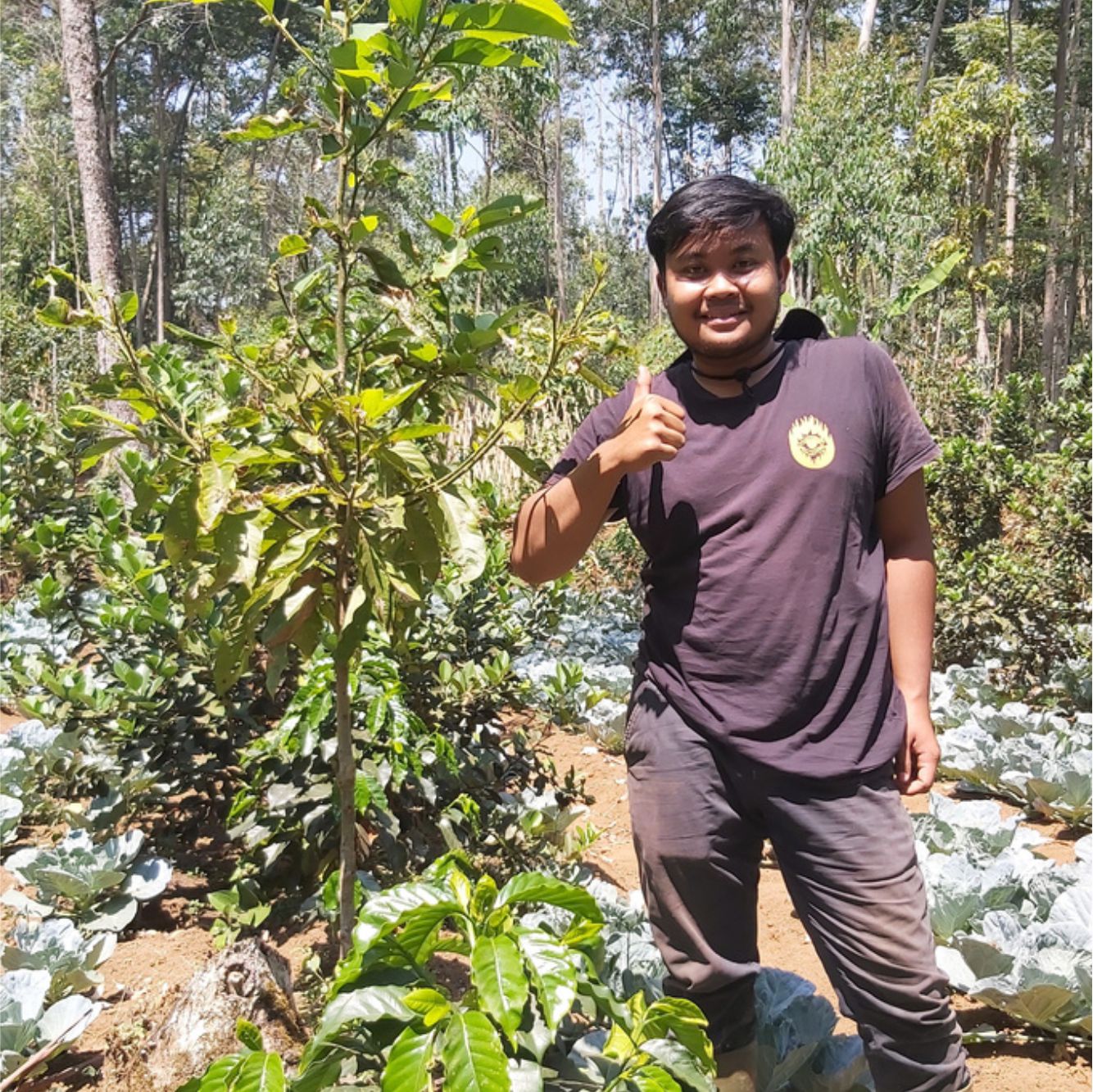 He uses this opportunity to restore forest functions while supporting the local economy. Alongside coffee, he plants fruit trees for income and focuses on native shade trees to maintain ecological balance.