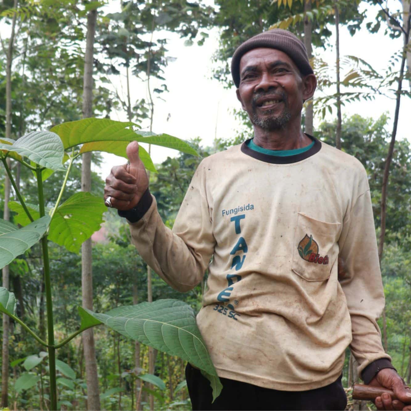 Alongside his main occupation as a teacher, Agus’ dedication to farming led to healthy, thriving trees, earning him recognition as the Trees4Trees Best Farmer in 2021.