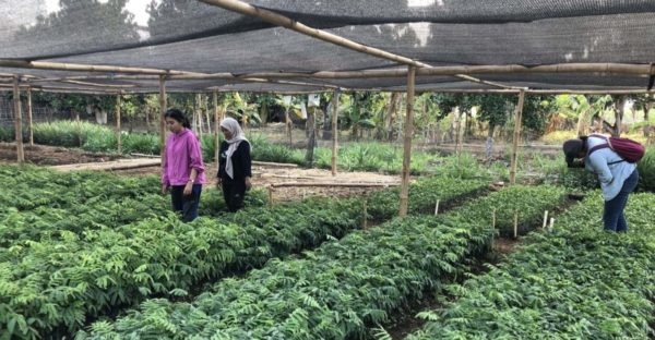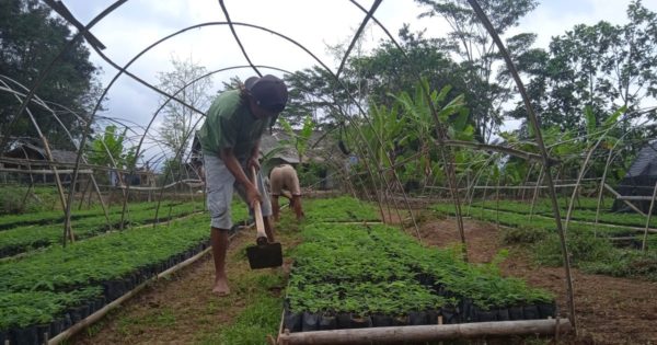 The clove tree, known ascengkeh is an evergreen tree native to the North Maluku Islands of Indonesia. Its aromatic flower buds are highly valuable due to their competitive prices in the market. This species is one of the trees we cultivate to provide income opportunities for our tree growers. (Above) Clove tree seedlings are growing taller in our Ciminyak nursery.