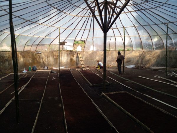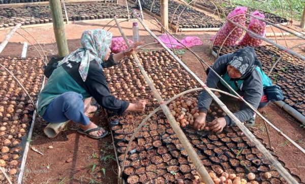 The Soreang nursery team is installing the paranet (above), while the Ciminyak nursery team (below) has already finished installing the shading net. These are used to protect seedlings from excessive sunlight, rainfall, and wind.