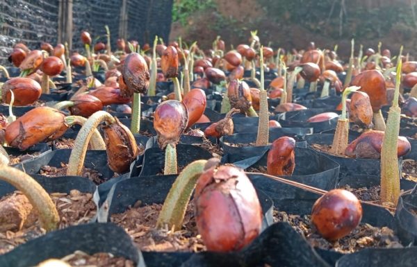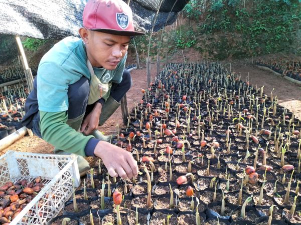 Cirasea nursery team is moving the stinky bean seedlings. Every tree seedling in the polybags needs to be moved to prevent the roots from not penetrating the ground. Additionally, moving the seedlings is necessary to distinguish between the surviving and non-surviving ones.
