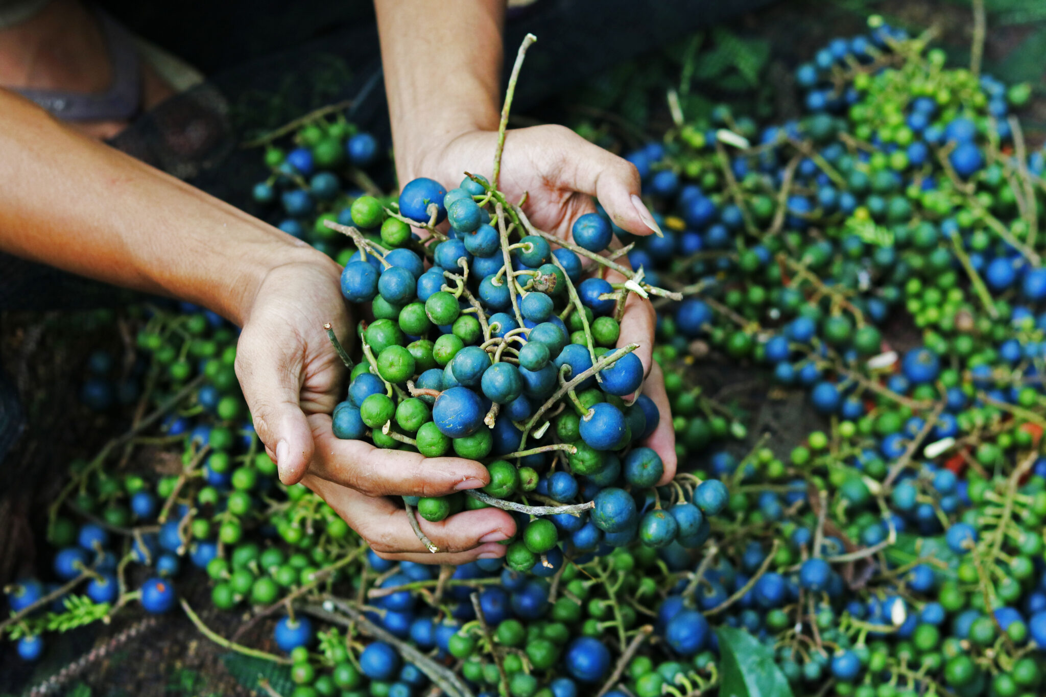 - When ripe, they’re covered by an iridescent blue outer fruit, which gives them their other name: blueberry beads.