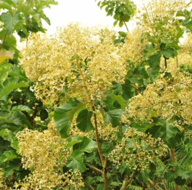 Teak flowers produce fragrant yellow-white flowers that attract pollinators, including honey bees. They will collect nectars from teak flowers during blooming season and contribute in natural honey production in teak forests.